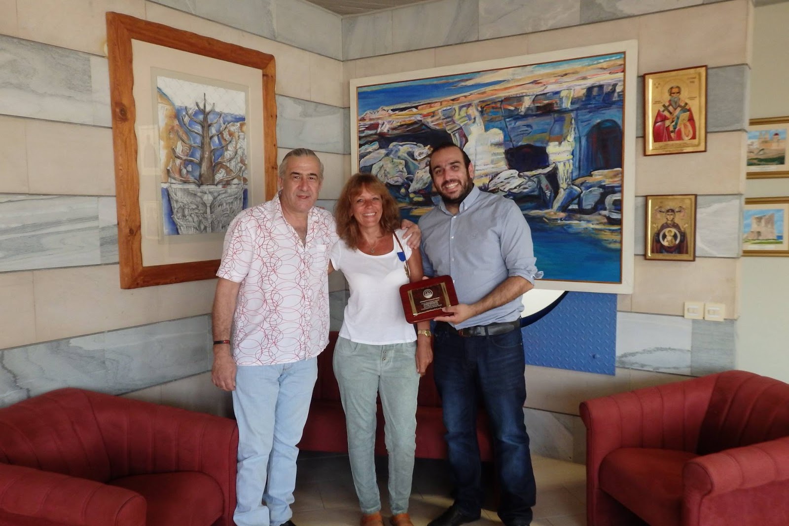 Ο Δήμαρχος, προστίθεται, «προσέφερε στην κυρία Ebner αναμνηστική πλακέτα και παράσημο με το έμβλημα του Δήμου Αγίας Νάπας».
