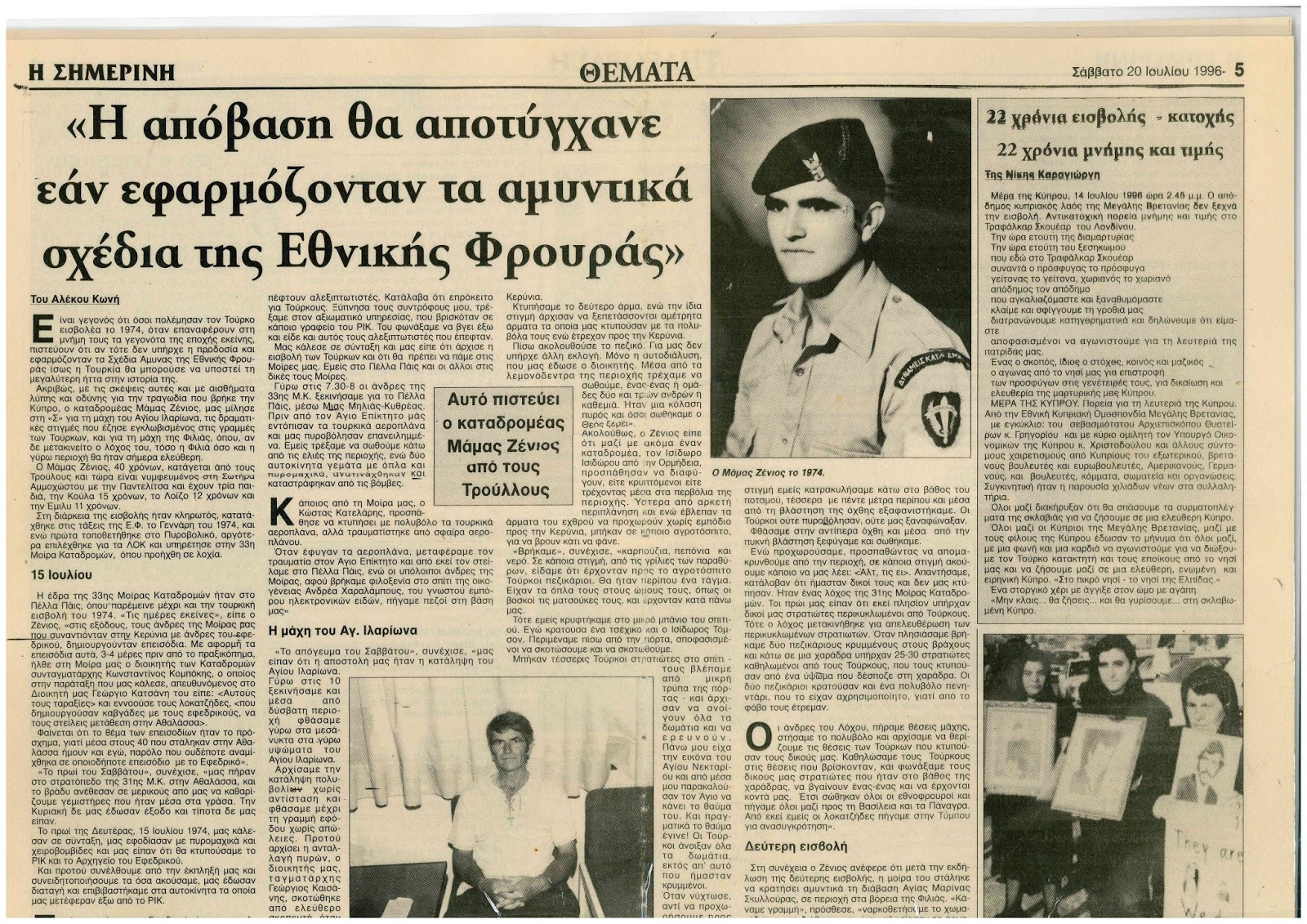 Πηγή: Αρχείο Εφημερίδας “ΣΗΜΕΡΙΝΗ” (20/7/1996)