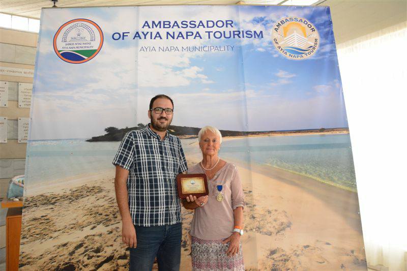 Με τον τίτλο του Πρέσβη του Τουρισμού της Αγίας Νάπας τιμήθηκε για τις πολυάριθμες επισκέψεις της η Γερμανίδα τουρίστρια Seitz Helga.