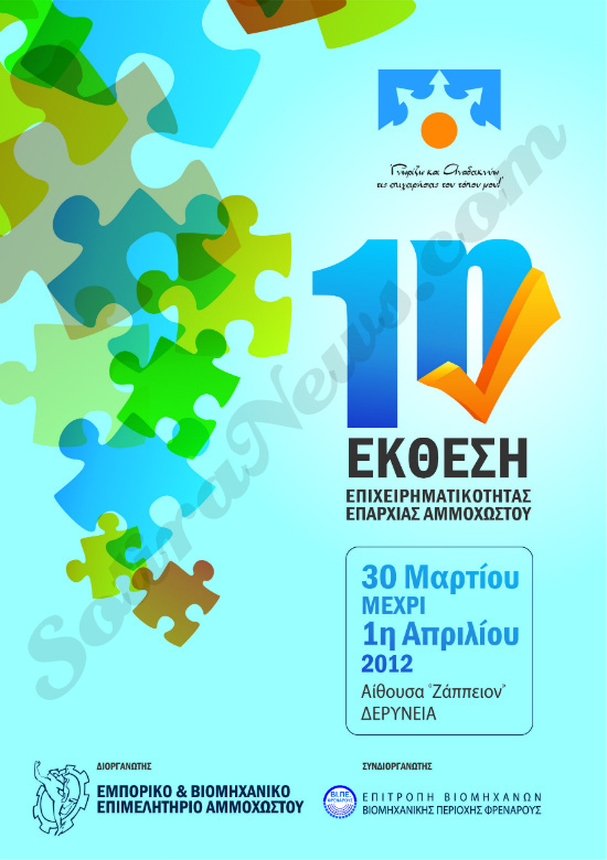 Το Εμπορικό και Βιομηχανικό Επιμελητήριο Αμμοχώστου μέσα στα πλαίσια της προσπάθειας του για προώθηση και ανάδειξη των Αμμοχωστιανών επιχειρήσεων και των προϊόντων ή υπηρεσιών που παράγουν ή/και εμπορεύονται, διοργανώνει έκθεση επιχειρηματικότητας το τριήμερο 30 Μαρτίου – 1η Απριλίου 2012, με τα εγκαίνια να τελούνται απόψε στις 18:30 από τον Υπουργό Εμπορίου, Βιομηχανίας και Τουρισμού, κ. Νεοκλή Συλικιώτη…