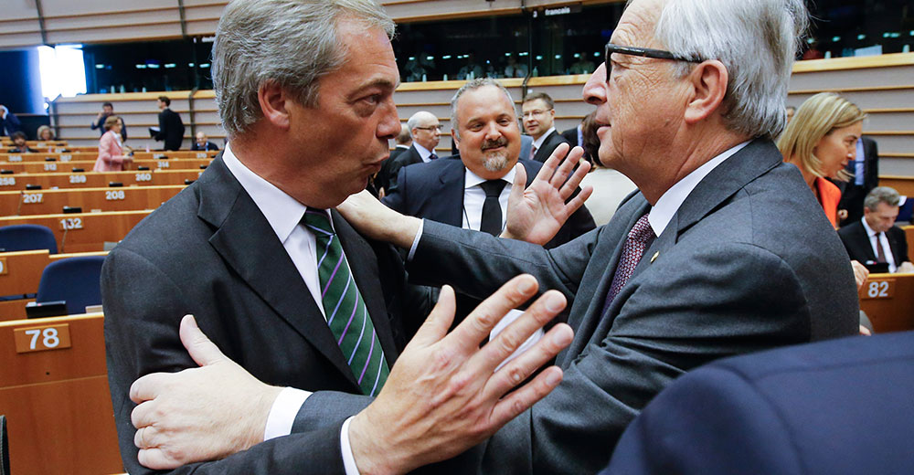 «Με την έξοδο της Βρετανίας θα απαλλαγούμε τουλάχιστον από τη μεγαλύτερη σπατάλη των τελευταίων 17 χρόνων, τον μισθό σας» είπε, απευθυνόμενος στον Φάρατζ, ενώ τον κατηγόρησε για «ναζιστικού τύπου προπαγάνδα».
