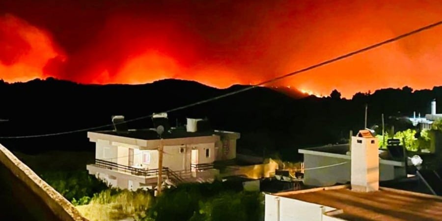 Σύμφωνα με την Πυροσβεστική, υπήρξε μια μεγάλη αναζωπύρωση στο μέτωπο προς Λάερμα και για το λόγο αυτό χθες το βράδυ εστάλη μήνυμα από το 112 στους κατοίκους που βρίσκονται στην περιοχή να εκκενώσουν προς τον Αρχάγγελο.