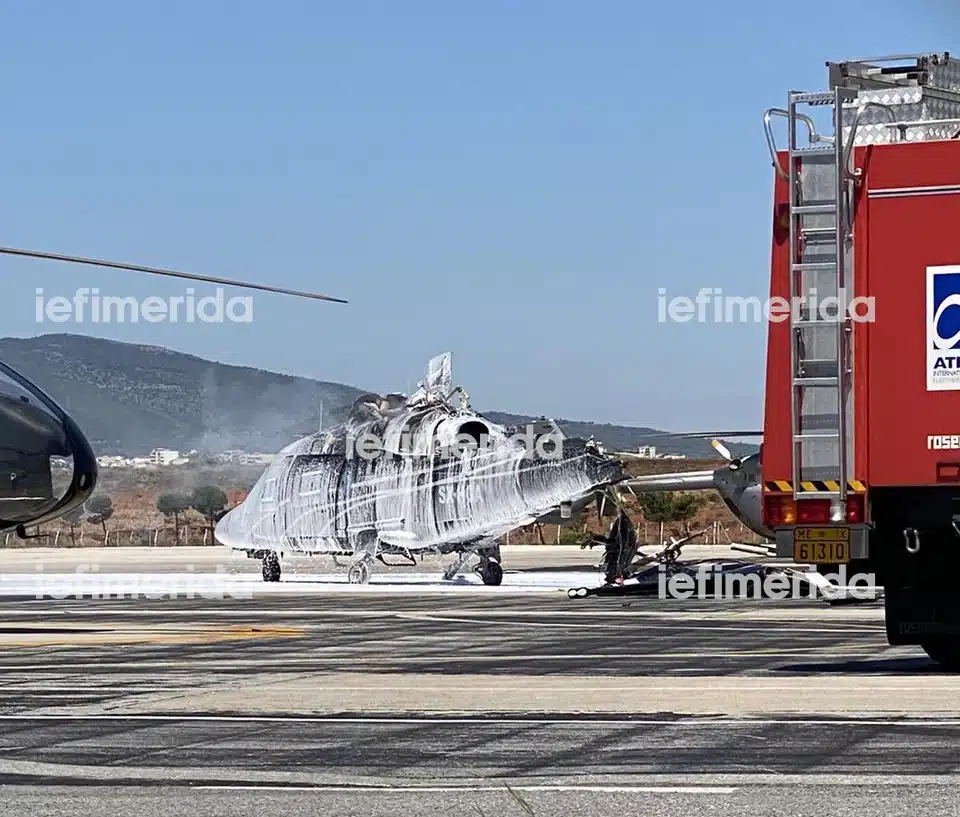 Στις φλόγες τυλίχθηκε ιδιωτικό ελικόπτερο στo Ελευθέριος Βενιζέλος το πρωί της Τρίτης.