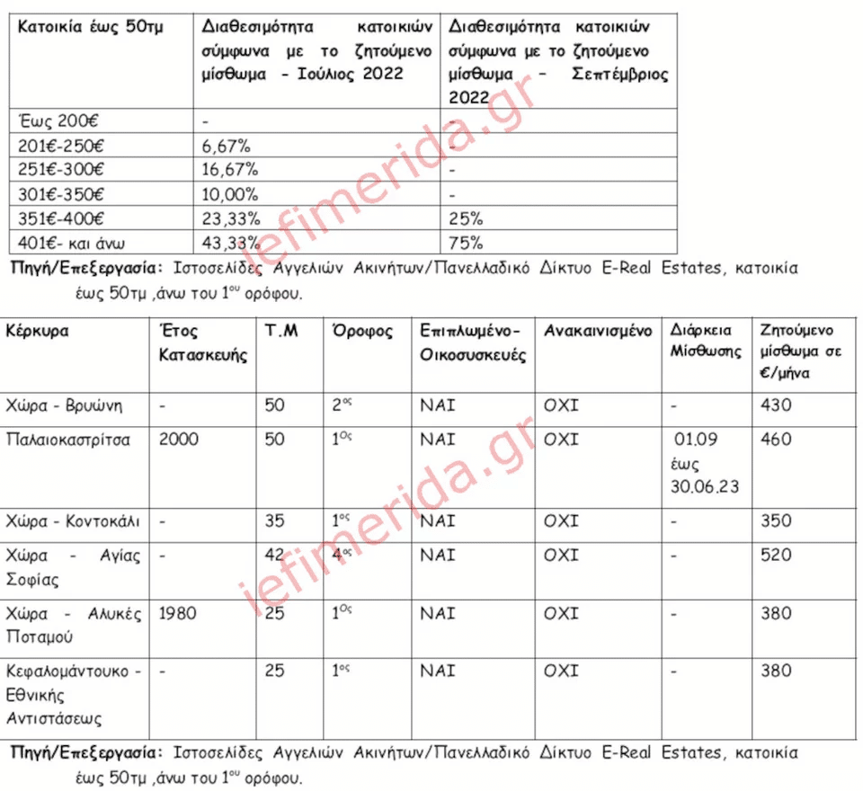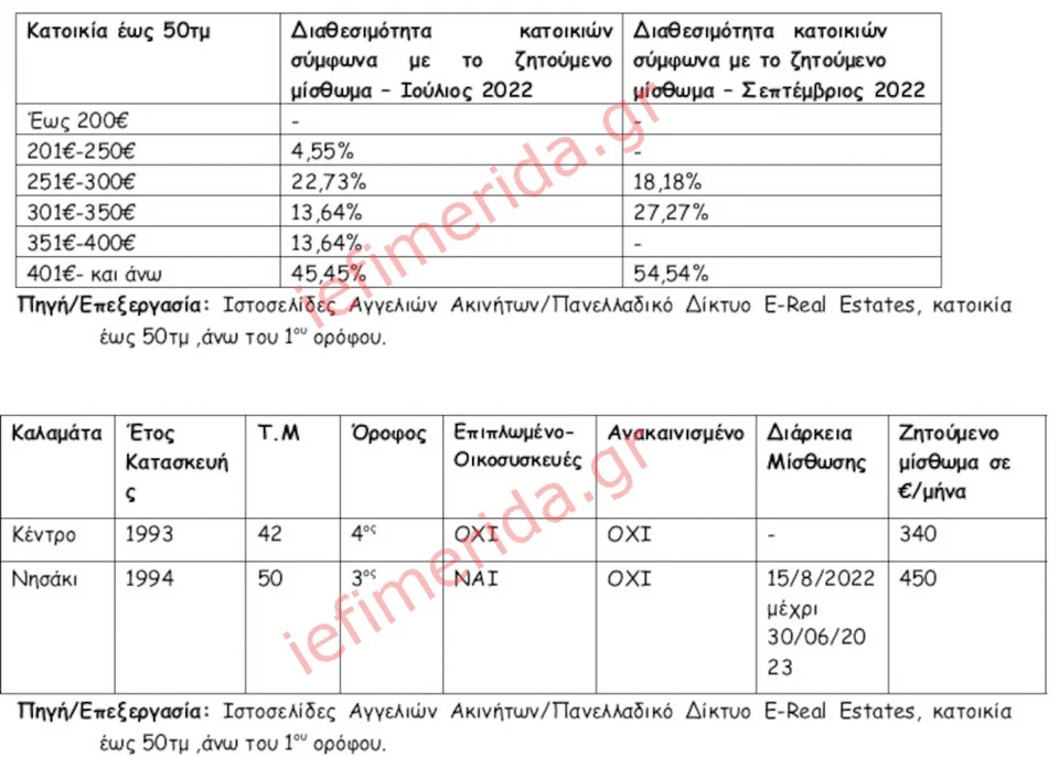Η διαθεσιμότητα ακινήτων, κατάλληλων για φοιτητών, στα Χανιά, το Ρέθυμνο, την Καλαμάτα και την Κέρκυρα, είναι πολύ μικρή με το ενοίκιο να ξεκινά από τα 400 ευρώ το μήνα (!).