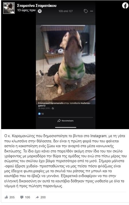 Δεν μπορούμε να σώσουμε όλα τα ζώα. Αλλά μπορούμε να γίνουμε η φωνή τους όταν κακοποιούνται μπροστά στα μάτια μας και να ζητήσουμε μέσα στο πλαίσιο του νόμου την τιμωρία που αρμόζει σε τέτοιες αποτρόπαιες πράξεις. Λυπούμαστε βαθιά γιατί η μία εκ των συμμετεχόντων είναι αθλήτρια και μέλος της Ελληνικής Ομοσπονδίας Καράτε @hellaskarate, την οποία καλούμε να καταδικάσει δημόσια το περιστατικό.