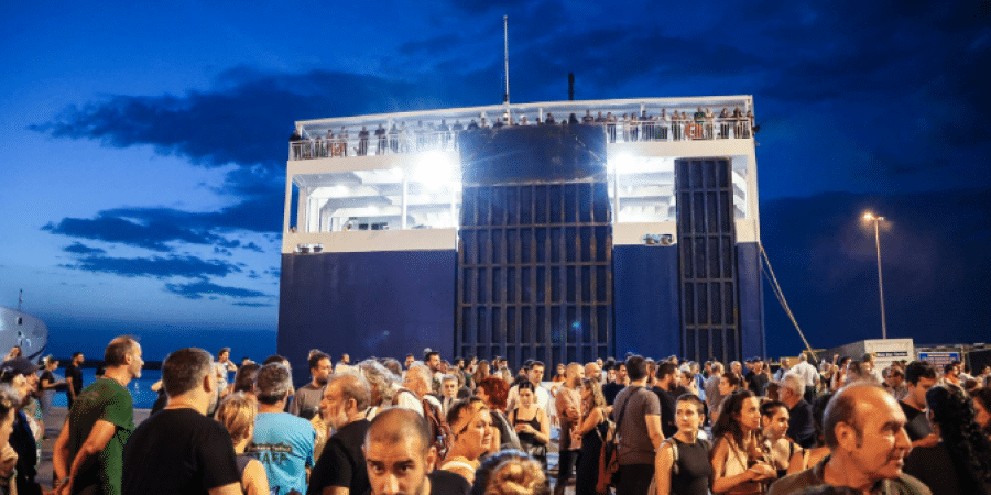 Στιγμιότυπο από κινητοποίηση μπροστά στο πλοίο στο λιμάνι του Ηρακλείου
