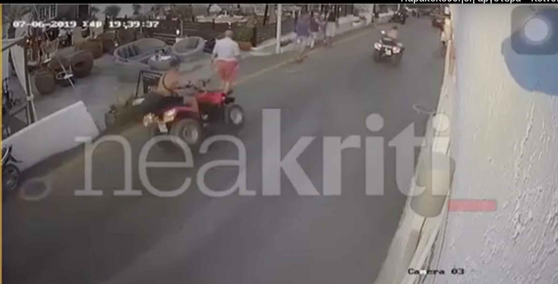 «Η ώρα είναι 7.40 μ.μ και τουρίστες περπατούν ανυποψίαστοι στον δρόμο απολαμβάνοντας την βόλτα τους. Ξαφνικά εμφανίζονται δυο τετράτροχα οχήματα, τύπου γουρούνα, να κινούνται με μεγάλη ταχύτητα. Ωστόσο το ένα εκ των δυο οχημάτων φαίνεται ξεκάθαρα να χάνει τον έλεγχο, πέφτοντας πάνω στους 4 ανθρώπους»,αναφέρεται στο ethnos.gr σχετικά.