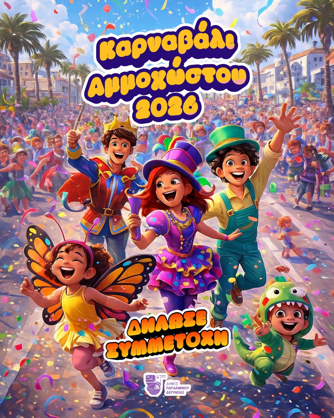 Η μεγάλη Καρναβαλίστικη Παρέλαση έρχεται στις 22 Φεβρουαρίου 2026 στο Παραλίμνι, και ο Δήμος Παραλιμνίου – Δερύνειας καλεί ομάδες, σχολές, οργανωμένα σύνολα, συλλόγους και παρέες να γίνουν μέρος αυτής της μοναδικής γιορτής χρώματος, χορού και διασκέδασης.