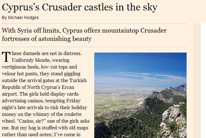 Πρόκειται για άρθρο, το οποίο φέρει ημερομηνία 19 Ιουλίου, είναι αναρτημένο στην ιστοσελίδα της εφημερίδας και το οποίο αποτελεί μια περιήγηση στα φρούρια του Αγίου Ιλαρίωνος, στο Βουφαβέντο και στην Καντάρα. Σημειώνεται επίσης ότι αναγνώστες που έχουν εντοπίσει το άρθρο αυτό, άρχισαν ήδη να κινητοποιούνται μέσω διαδικτύου, προωθώντας το ηλεκτρονικά με την απαίτηση όπως καταδικαστεί η ενέργεια αυτή.