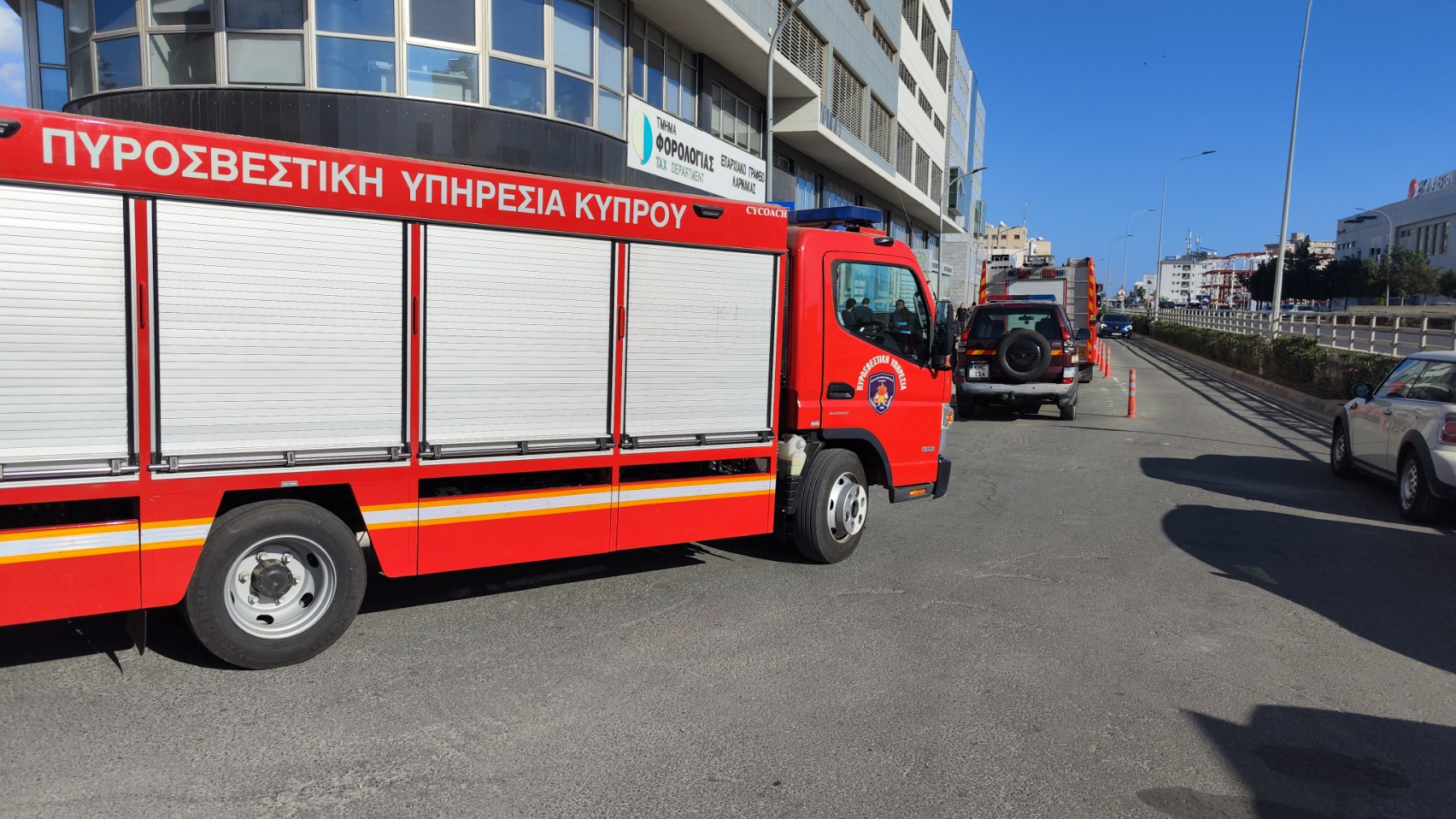 Εκκενώθηκε το Τμήμα Φορολογίας που βρίσκεται στην λεωφόρο Σπύρου Κυπριανού στη Λάρνακα λόγω καπνού και αναθυμιάσεων που έγιναν αντιληπτά από το σύστημα αποχέτευσης.