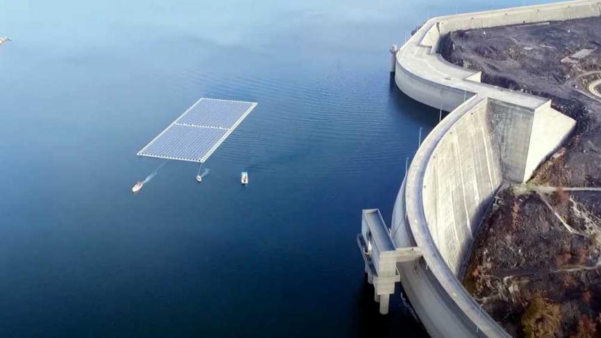 Ηλιακά πάνελ τοποθετημένα σε πλωτές εξέδρες σε λίμνες ή στην θάλασσα χρησιμοποιούνται από την Καλιφόρνια ως την Κίνα στο πλαίσιο των προσπαθειών για την μείωση των εκπομπών αερίων που προκαλούν το φαινόμενο του θερμοκηπίου.