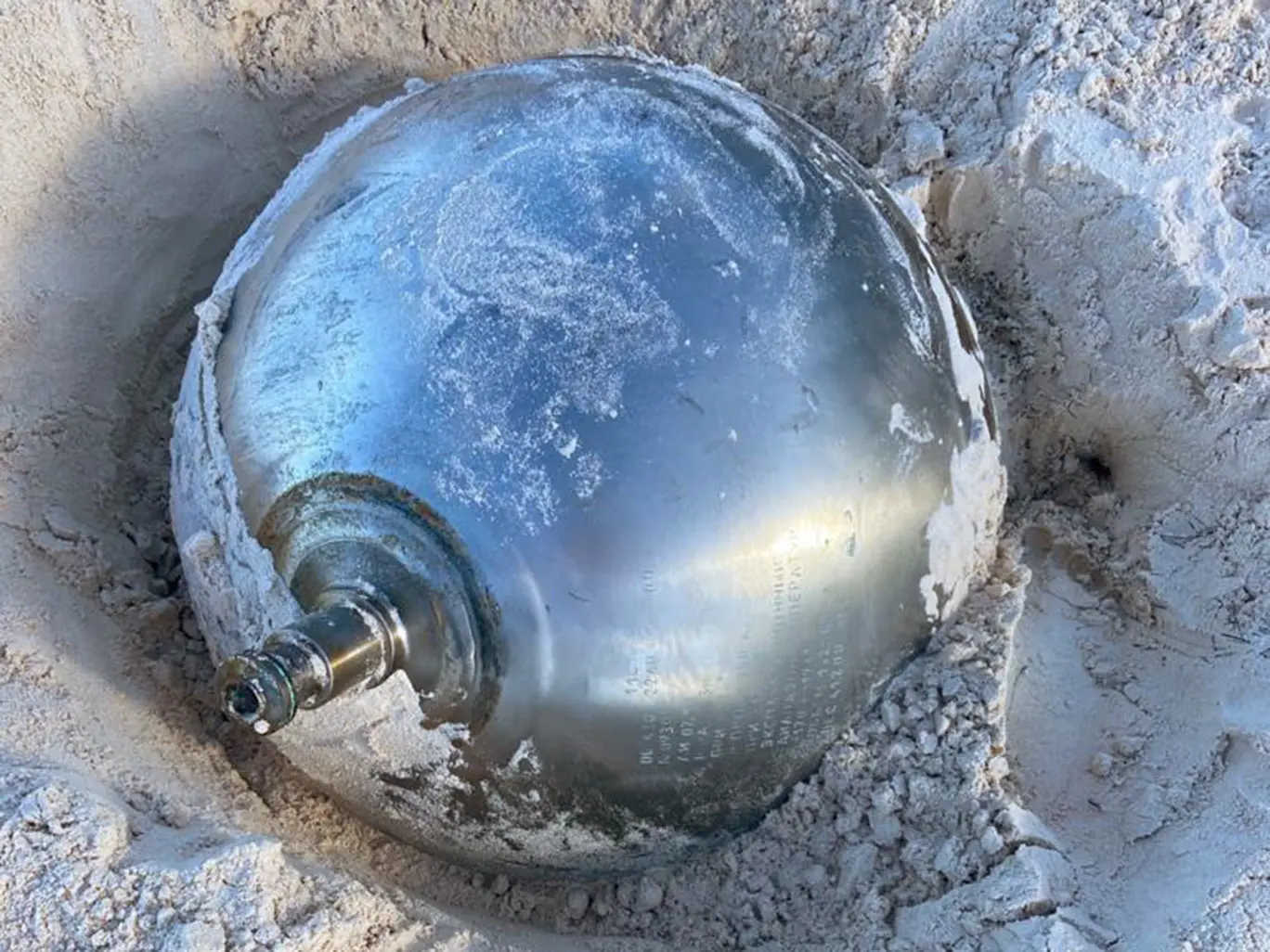 Πάνω στην μπάλα διακρίνεται μία ρωσική επιγραφή με βασικές πληροφορίες για το συγκεκριμένο αντικείμενο. Συγκεκριμένα αναγράφεται το εύρος θερμοκρασίας λειτουργίας που κυμαίνεται μεταξύ -170 και -196 Κελσίου, η χωρητικότητα που υπολογίζεται γύρω στα 43 λίτρα, καθώς και το μέγιστο βάρος στα 41 κιλά. Υποθέσεις θέλουν την μπάλα τιτανίου να έχει κατασκευαστεί το 2018.