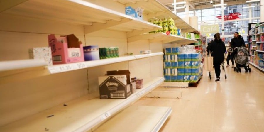 Τα ράφια των σούπερ μάρκετ που συνήθως βρίσκονται τα λαχανικά, τα χαρτικά και τα νουντλς ήταν άδεια σε πολλά καταστήματα τροφίμων στην πρώην βρετανική αποικία, με τους πελάτες να αγοράζουν μεγάλες ποσότητες ανησυχώντας ότι τα πράγματα θα δυσκολέψουν ακόμα περισσότερο τις επόμενες ημέρες.