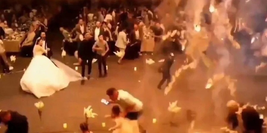 Ο γαμπρός λέει ότι ενώ χόρευε, το ρεύμα έσβησε και όταν το ρεύμα επανήλθε, «είδε φωτιά» στο ταβάνι και τότε οι άνθρωποι άρχισαν να «ουρλιάζουν» και να «φεύγουν τρέχοντας».