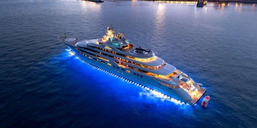 Η θαλαμηγός Dilbar, μήκους 156 μέτρων, κατασχέθηκε στο λιμάνι του Αμβούργου, κατά τις πληροφορίες του Φορμπς.