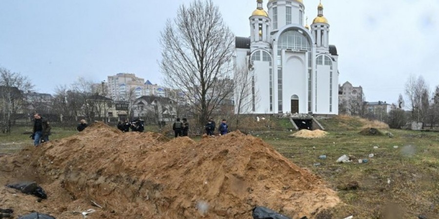 Εικόνες με πτώματα κατοίκων, τα οποία ανακαλύφθηκαν μετά την αποχώρηση των ρωσικών στρατευμάτων από την περιοχή, έχουν προκαλέσει διεθνή φρίκη και η Ουκρανία κατηγορεί για τη σφαγή τα ρωσικά στρατεύματα. Η Μόσχα αρνείται την κατηγορία. Η ρωσική πρεσβεία στο Βερολίνο έκανε λόγο για «σκηνοθεσία από το καθεστώς του Κιέβου για τα δυτικά μέσα ενημέρωσης».