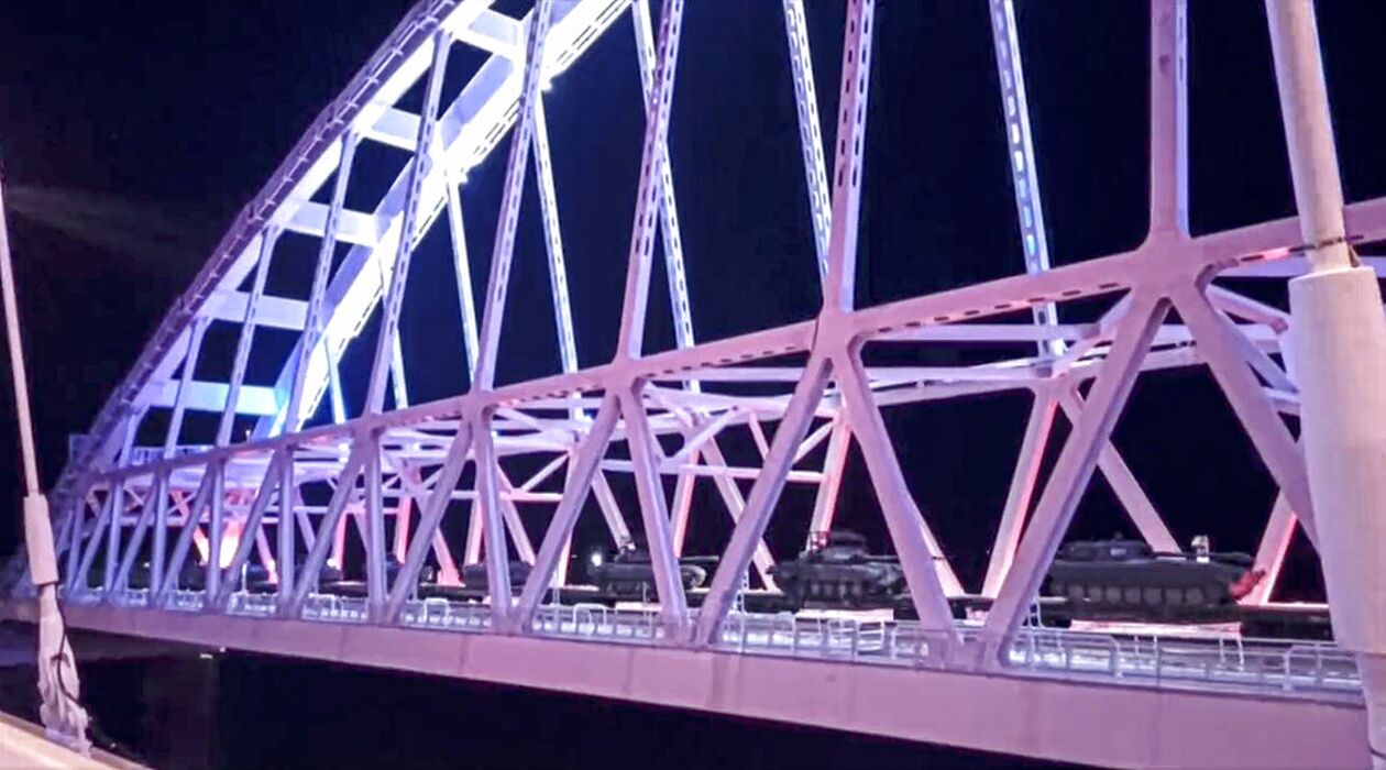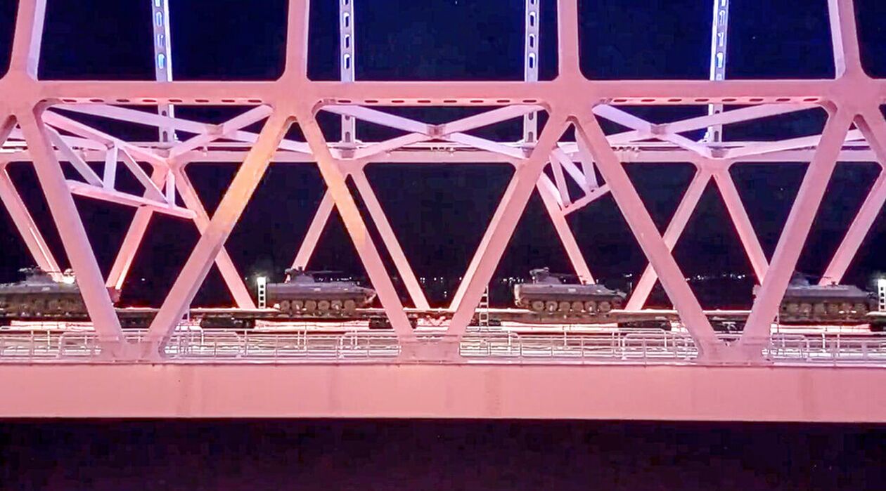 Ως απάντηση στις δυσπιστία της Δύσης, το κρατικό Ria Novosti μετέδωσε νυχτερινές εικόνες από ένα τρένο που μετέφερε τανκς να διασχίζει τη γέφυρα που περνά από τα στενά Κερτς, την οποία κατασκεύασε η Μόσχα για να ενώσει την Κριμαία με το ρωσικό έδαφος.