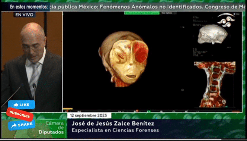 NEW – Alleged "non-human" alien corpses shown during a public hearing in Mexico's congress. pic.twitter.com/lBiKyWZoDZ