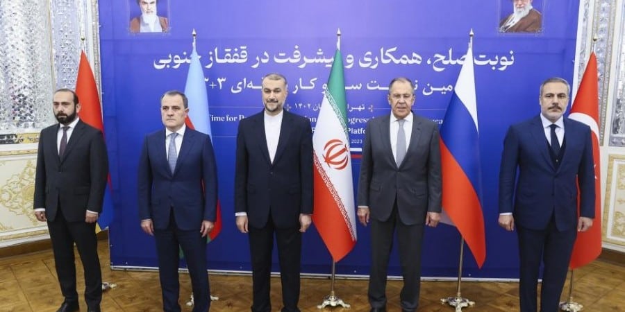 Πενταμερείς διαβουλεύσεις για ζητήματα ασφαλείας και συνεργασίας στην περιοχή του Καυκάσου είχαν στην Τεχεράνη οι Υπουργοί Εξωτερικών Αζερμπαϊτζάν, Τζεϊχούν Μπαϊράμοφ, Αρμενίας Αραράτ Μιρζογιάν, Ιράν, Χοσεΐν Αμίρ Αμπντολαχιάν, Ρωσίας, Σεργκέι Λαβρόφ και Τουρκίας, Χακάν Φιντάν στο πλαίσιο της «Συμβουλευτικής Περιφερειακής Πλατφόρμας 3+3», που προβλέπει και την συμμετοχή της Γεωργίας, η οποία δεν εκπροσωπήθηκε αυτή την φορά.