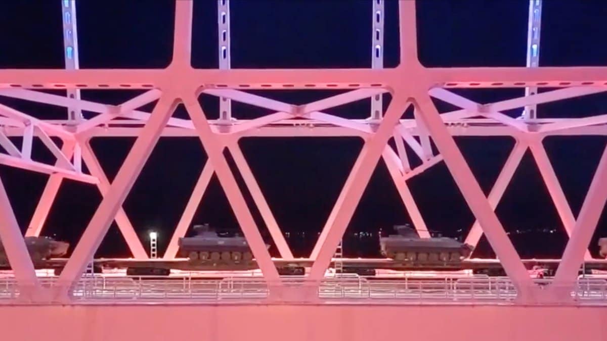 Όπως ανακοίνωσε το ρωσικό yπουργείο Άμυνας και προβάλλουν τα ρωσικά μέσα ενημέρωσης, μεγάλη στρατιωτική φάλαγγα με τεθωρακισμένα, άλλα στρατιωτικά οχήματα, μονάδες πυροβολικού και τεχνικά μέσα υποστήριξης πέρασαν τη γέφυρα της Κριμαίας και κινούνται προς το ηπειρωτικό έδαφος της Νοτίου Ρωσίας και τα μόνιμα στρατόπεδά τους στη Νότιο Στρατιωτική Διοίκηση της χώρας.