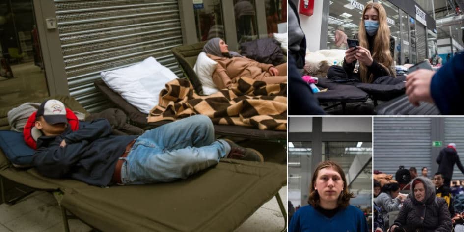 Σύμφωνα με τους υπευθύνους του κέντρου, ο αρχικός σχεδιασμός ήταν να φιλοξενηθούν περίπου 200 άτομα στο συγκεκριμένο εμπορικό. Πλέον, είναι χιλιάδες οι φιλοξενούμενοι. Και εκεί που υπήρχαν οι επιγραφές για προσφορές και ταμπέλες των Zara, Nike και άλλων μαρκών, σήμερα βρίσκονται αναρτημένα μηνύματα και οδηγίες στα Ουκρανικά, και σε άλλες γλώσσες, προκειμένου να βρίσκουν το δρόμο τους οι πρόσφυγες.