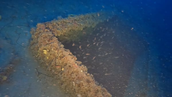 Όπως διαπιστώθηκε κατά την ταυτοποίησή του, το τιμόνι – πηδάλιο του μότορσιπ είναι στριμμένο στην θέση όλο αριστερά, ενώ τα τρία στρατιωτικά φορτηγά βρέθηκαν εκτός ναυαγίου, διασκορπισμένα στο βυθό κοντά στο ναυάγιο. Το μότορσιπ ήταν το πρώην Πηνειός του Πολεμικού Ναυτικού με το μήκος του να φτάνει τα 43 μέτρα και το πλάτος του τα 7,6.