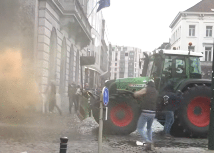Είχε προηγηθεί, λίγο πριν τα μεσάνυχτα της Τετάρτης, η εμφάνιση περισσότερων από 100 τρακτέρ που απέκλεισαν τη λεωφόρο Rue de la Loi, μπροστά από τα κτίρια της Ευρωπαϊκής Επιτροπής και του Ευρωπαϊκού Συμβουλίου, αιφνιδιάζοντας τις Αρχές.