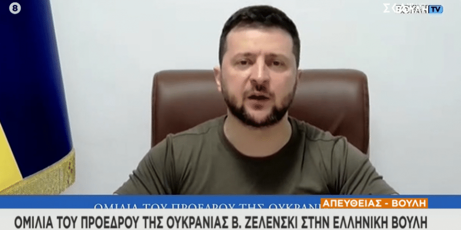 «Ελληνικέ λαέ καλημέρα σας […] Ελευθερία ή Θάνατος έλεγαν οι δικοί σας επαναστάτες αυτό λέμε και εμείς σήμερα», ξεκίνησε την ομιλία του ο Πρόεδρος της Ουκρανίας Βολοντίμιρ Ζελένσκι, μέσω τηλεσύνδεσης, στη Βουλή των Ελλήνων κάνοντας εκτενείς αναφορές στους ιστορικούς δεσμούς και στη μαρτυρική Μαριούπολη ζητώντας τη δημιουργία μιας νέας «Φιλικής Εταιρείας» για να σωθεί η ελληνική Ομογένεια και η Ουκρανία