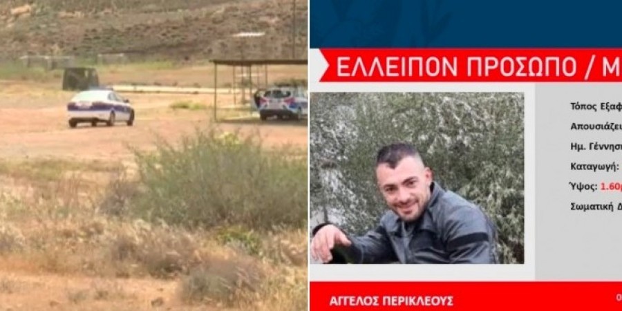 Υπενθυμίζεται ότι ο 31χρονος Άγγελος Περικλέους εξαφανίστηκε το βράδυ της Πέμπτης, ενώ το όχημα του βρέθηκε καμένο στο πεδίο βολής στο Παλιομέτοχο.