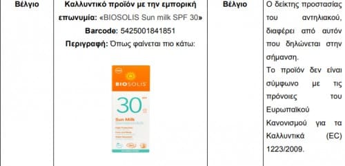 Μεταξύ των προϊόντων που αποσύρονται είναι αντηλιακά για παιδιά.