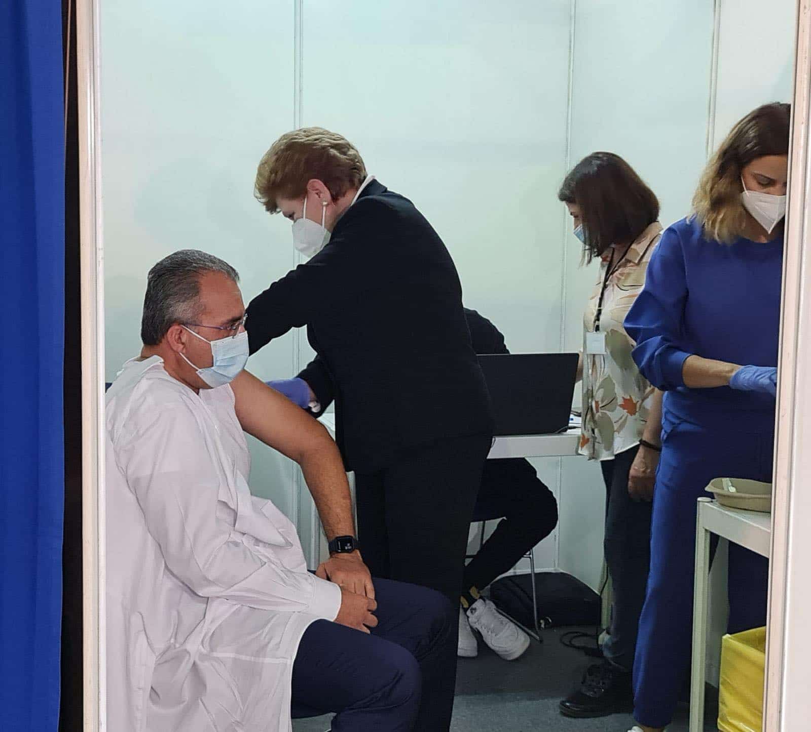 Την 3η δόση του εμβολίου έλαβε στο εμβολιαστικό κέντρο της Κρατικής Έκθεσης ο Υπουργός Υγείας, Μιχάλης Χατζηπαντέλα. Την τρίτη δόση χορήγησε στον Υπουργό η Γενική Διευθύντρια του Υπουργείου Υγείας, Χριστίνα Γιαννάκη.