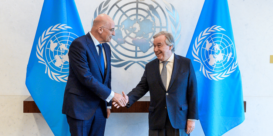 Ο κ. Δένδιας συναντήθηκε με τον Γενικό Γραμματέα των Ηνωμένων Εθνών Αντόνιο Γκουτέρες στον ΟΗΕ το μεσημέρι της Πέμπτης για την ανακοίνωση της υποψηφιότητας της Ελλάδας για το Συμβούλιο Ασφαλείας των Ηνωμένων Εθνών για την περίοδο 2025-26.