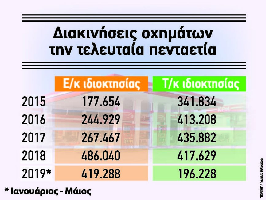 Οι διελεύσεις των Τ/Κ είναι επίσης αυξημένες το 2019 –κατά το πρώτο πεντάμηνο ξεπέρασαν τις 514 χιλιάδες– και με βάση τις προβλέψεις θα ξεπεράσουν ελαφρώς αυτές του 2018. Τον Μάιο πέρασαν 103.500 Τ/Κ (3.300 περίπου ημερησίως) ενώ τον Μάιο του 2017 87.648 (2.800 ημερησίως). Οι ευρωεκλογές και η προσέλευση 5.604 Τ/Κ στις κάλπες δεν διαφοροποίησε σημαντικά τις διελεύσεις Τ/Κ.