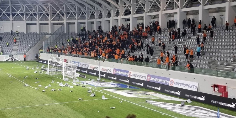 Κατά την άφιξη των οπαδών των δύο ομάδων στο στάδιο, οπαδοί της μιας ομάδας κινήθηκαν απειλητικά εναντίον των οπαδών της άλλης ομάδας. Επενέβησαν άμεσα, μέλη της Αστυνομίας και με τη χρήση του αντιοχλαγωγικού οχήματος, η τάξη αποκαταστάθηκε.