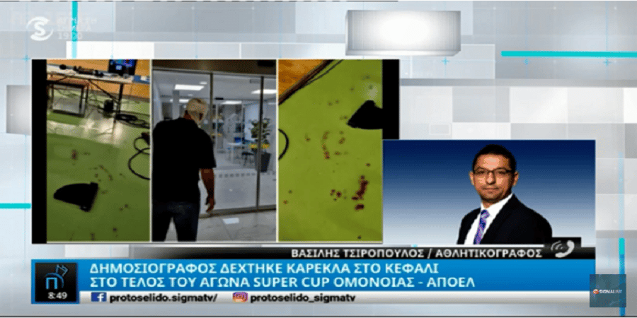 Ο αθλητικογράφος του ΣΙΓΜΑ Βασίλης Τσιρόπουλος ανέφερε στο Πρωτοσέλιδο ότι δημοσιογράφος τραυματίστηκε από μια καρέκλα που έριξαν οπαδοί AP;O την κερκίδα. Στη συνέχεια μεταφέρθηκε στο Νοσοκομείο και του έγιναν 15 ράμματα.