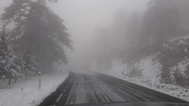 Πυκνή ομίχλη φαίνεται να επηρεάζει την περιοχή του Τροόδους με αποτέλεσμα να δημιουργεί προβλήματα στο οδικό δίκτυο.