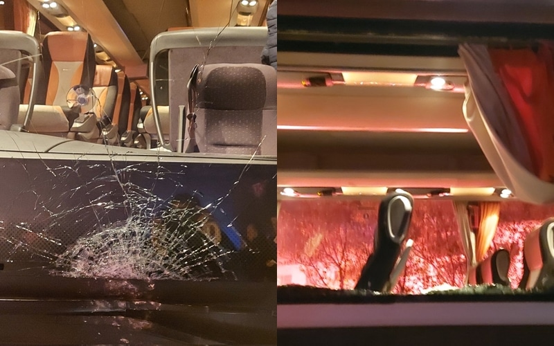 Από την επίθεση, προκλήθηκαν ζημιές στον μπροστινό ανεμοθώρακα, στα πλαϊνά παράθυρα, καθώς επίσης και σε όλη την αριστερή πλευρά του λεωφορείου.