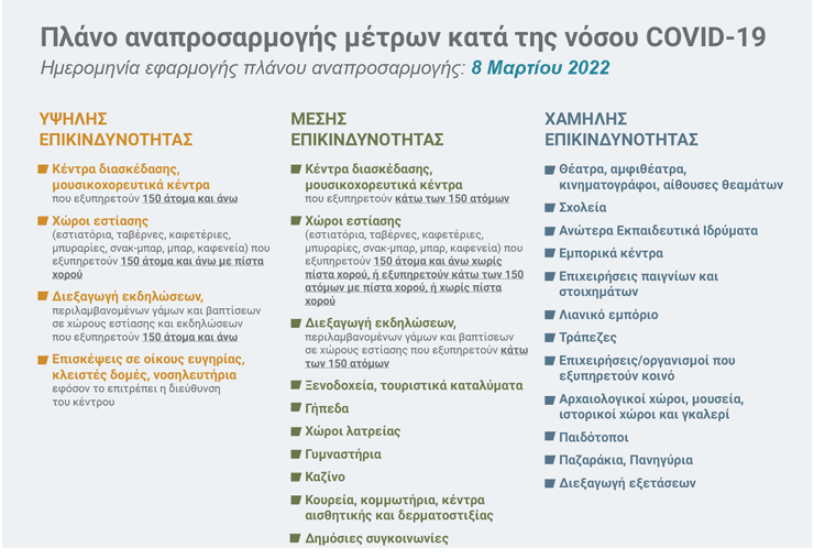 Εφαρμόστηκε από χθες το πλάνο αναπροσαρμογής των μέτρων κατά της COVID19. Το αναθεωρημένο πλάνο αφορά ουσιαστικά τον τρόπο με τον οποίο θα μπαίνουμε σε κάθε υποστατικό.