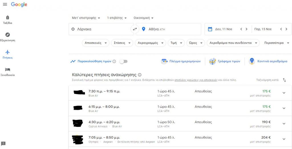 Εάν έχετε ήδη περάσει από την διαδικασία εύρεσης μιας πτήσης μέσω Google Flights αλλά δεν θέλετε ακόμη να κάνετε κράτηση εισιτηρίου είτε γιατί το κόστος είναι μεγάλο είτε γιατί σχεδιάζετε να ταξιδέψετε σε κάποιους μήνες και όχι σύντομα, η Google σας δίνει την δυνατότητα να παρακολουθείτε την τιμή της πτήσης, στέλνοντάς σας τακτικά ένα email όποτε η τιμή ανεβαίνει ή κατεβαίνει.