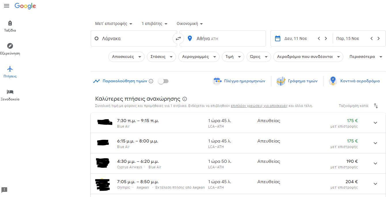 Για να διαχειριστείτε τις πτήσεις που παρακολουθείτε, μεταβείτε πρώτα στην διεύθυνση: https://www.google.com/flights.