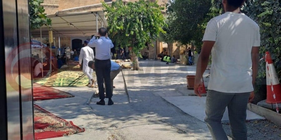 Δεκάδες αστυνομικοί περιφρουρούν το Τέμενος Ομεριέ στην παλιά πόλη όπου είναι προγραμματισμένη διαμαρτυρία.