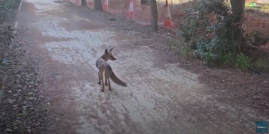 Μάλιστα, η αλεπού φαίνεται εμφανώς εξοικειωμένη με το περιβάλλον και ιδιαίτερα φιλική με τους ανθρώπους.
