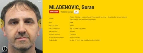 Στην κατηγορία «Βίαιοι εγκληματίες» συγκαταλέγεται καταζητούμενος που διέπραξε ένοπλη ληστεία στην Κύπρο το 2012.
