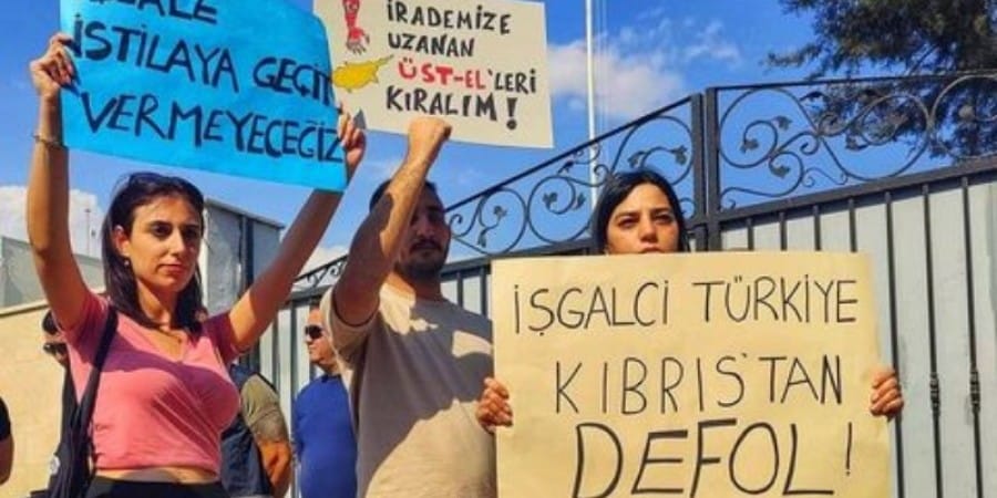 Tα μικρότερα κόμματα, ΚΚΔ, ΚΕΚ ΚΝΚ αντέδρασαν την Παρασκευή στην έρευνα της «αστυνομίας» για το πλακάτ με σύνθημα «Κατοχική Τουρκία εξαφανίσου από την Κύπρο» που κρατούσε νεαρή κοπέλα κατά την διάρκεια της προχθεσινής εκδήλωσης διαμαρτυρίας για την νέα «κυβέρνηση» που πραγματοποίησαν έξω από την «βουλή» και την τουρκική «πρεσβεία» που βρίσκεται ακριβώς απέναντι.
