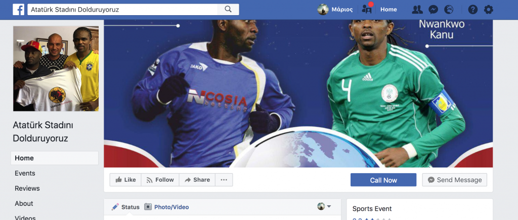Έντονη διαδικτυακή κινητοποίηση από Τ/κ για μεγάλη προσέλευση σε φιλανθρωπικό αγώνα που θα διεξαχθεί παρανόμως στο γήπεδο «Ατατούρκ» στην κατεχόμενη Λευκωσία στις 19 Μάϊου.