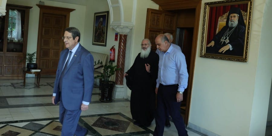 Ο Πρόεδρος της Δημοκρατίας κ. Νίκος Αναστασιάδης μετέβη σήμερα στην Ιερά Αρχιεπισκοπή Κύπρου, όπου επισκέφθηκε τον Αρχιεπίσκοπο Κύπρου κ.κ. Χρυσόστομο Β’.