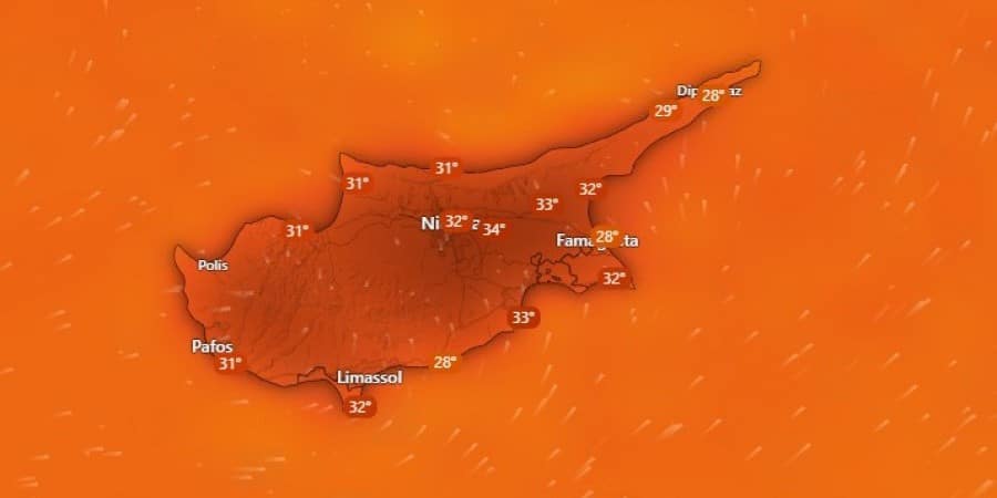 Η θερμοκρασία θα ανέλθει γύρω στους 41 βαθμούς στο εσωτερικό, γύρω στους 36 στα νοτιοανατολικά, στα ανατολικά και στα βόρεια παράλια, γύρω στους 33 στα δυτικά παράλια και γύρω στους 32 βαθμούς στα ψηλότερα ορεινά.