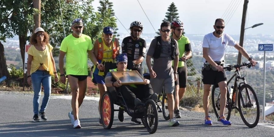 Ο Μάριος λοιπόν έτρεξε με το αμαξίδιό του στα θυρανοίξια του ναού του Αγίου Εφραίμ στην Τάλα.