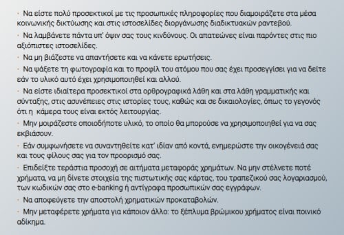 Πρωτίστως κερδίζουν την εμπιστοσύνη σας. Εν συνεχεία σας ζητούν χρήματα, δώρα ή στοιχεία του τραπεζικού σας λογαριασμού ή της πιστωτικής σας κάρτας.