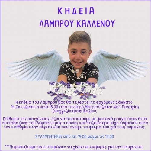 Το μεγάλο ταξίδι για τη γειτονιά των αγγέλων ξεκίνησε πρόωρα ο 11χρονος Λάμπρος Καλλένος ο οποίος απεβίωσε στις 25 Σεπτεμβρίου.